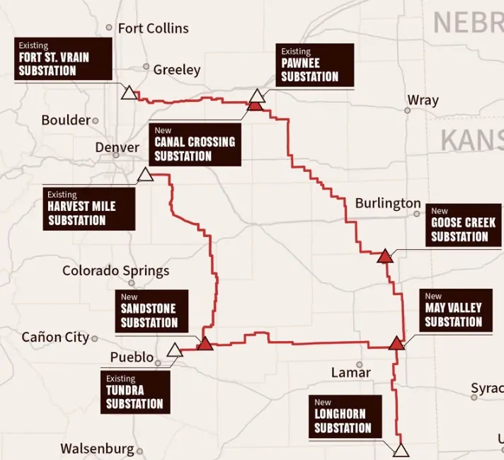 The Colorado Power Pathway loops around eastern Colorado, allowing it to pick up wind and solar generation for delivery to the Denver-Boulder metropolitan area. The PUC did not authorize the Longhorn extension from the Lamar area into the state’s southeast corner.