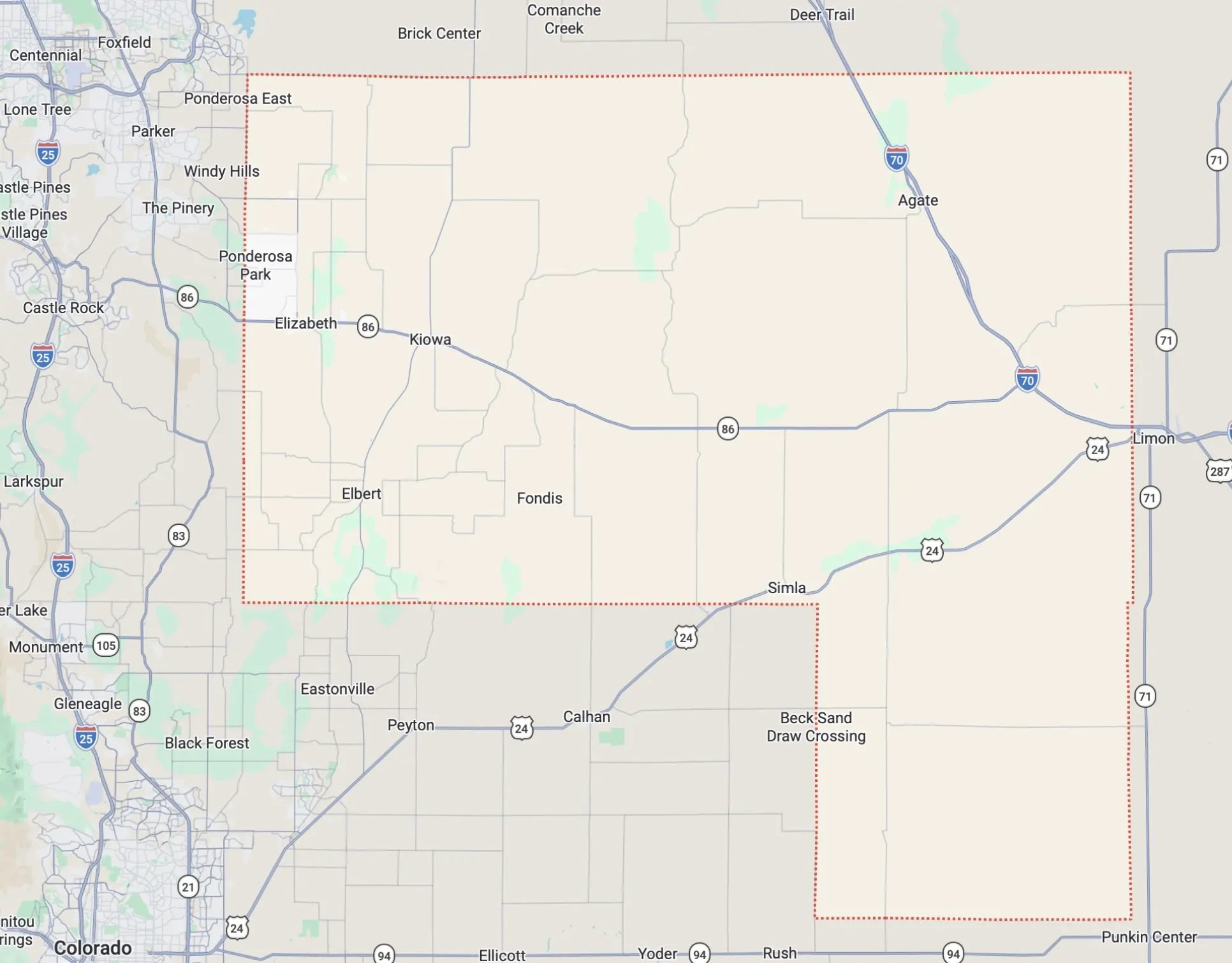 Located southeast of Denver, Elbert County sprawls across a diverse landscape of wheat fields, grazing lands and forests of ponderosa pine. In places, it is the Great Plains. In others, the foothills of the Rockies. To the east, near Elizabeth and Kiowa, the county seat, it’s a place of exurban 2-, 5- and 10-acre lots, large enough for horses and neighbors, but not too close. It’s a 35-minute commute from Kiowa to Parker, a little longer to Castle Rock.