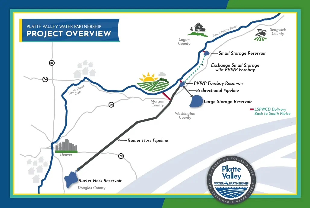 The Platte Valley Water Partnership is even more ambitious. Parker Water and Castle Rock Water have joined with the Lower South Platte Water Conservancy District.