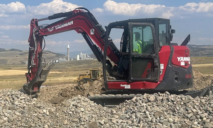 With the soon-to-be-closed Hayden Generating Station in the distance, work is underway in Hayden to create a business park whose buildings will be heated (and cooled, if necessary) by ground-source heat pumps, i.e. geothermal. Photo/Allen Best
